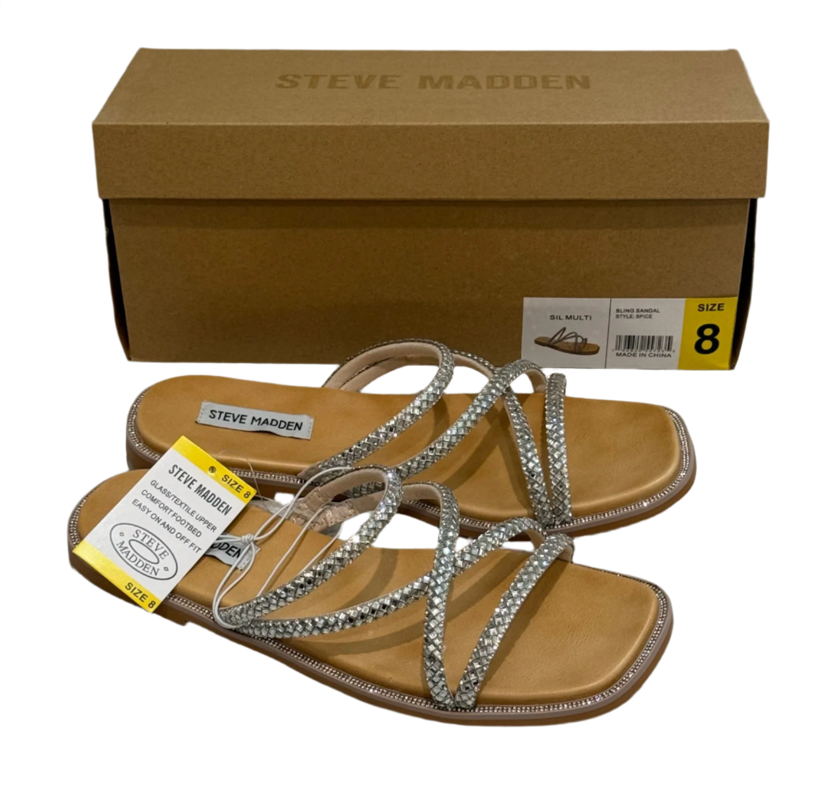 1 × Pair of Steve Madden Ladies Bling Sandals (Women’s US 8) — New with original box